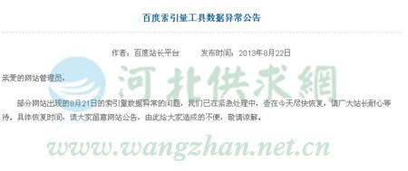 在大家都開始查找被百度屏蔽的原因時(shí),百度站長平臺(tái)的公告姍姍來遲。內(nèi)容如下: