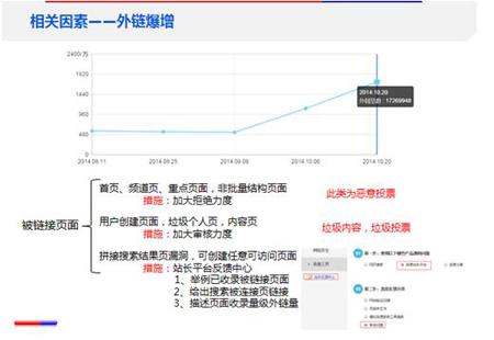 A、UGC站點(diǎn)尤其要關(guān)注這點(diǎn),之前談過要加大審核及處理力度,杜絕讓用戶創(chuàng)建垃圾內(nèi)容、個(gè)人頁面。不良分子為了排名的效果更好,會再對這些垃圾頁進(jìn)行投票。這里特別要提醒的是,如果站點(diǎn)審核力度及時(shí)就不會發(fā)生此類事情,只有站點(diǎn)內(nèi)容長期處于無人管理的狀態(tài)時(shí)才會出現(xiàn)如此問題。