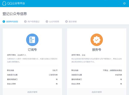 同微信的注冊(cè)不同,QQ公眾號(hào)可以使用qq登錄即可申請(qǐng)賬號(hào)。選擇賬號(hào)類型。下面的注冊(cè)信息與微信公眾號(hào)基本一致了!