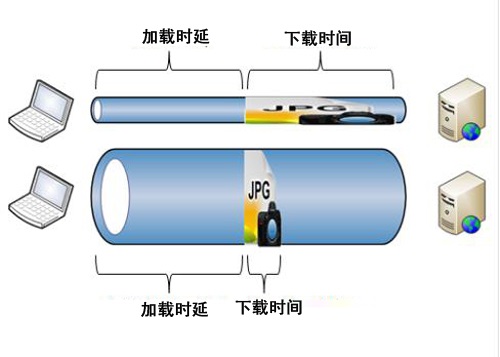 快速的互聯(lián)網(wǎng)連接只是其中的一部分,加載頁面所需的時間不僅取決于連接的速度,還取決于瀏覽器對該頁面的遠近。就好比是將我們的互聯(lián)網(wǎng)連接視為管道。我們的連接帶寬即“速度”越高,管道越寬。管道越寬,可以并行下載的數(shù)據(jù)越多。雖然這有助于整體數(shù)據(jù)吞吐量,但我們的瀏覽器所建立的每個特定連接仍然需要最小的距離。用圖來說明一下帶寬和延遲之間的差異。